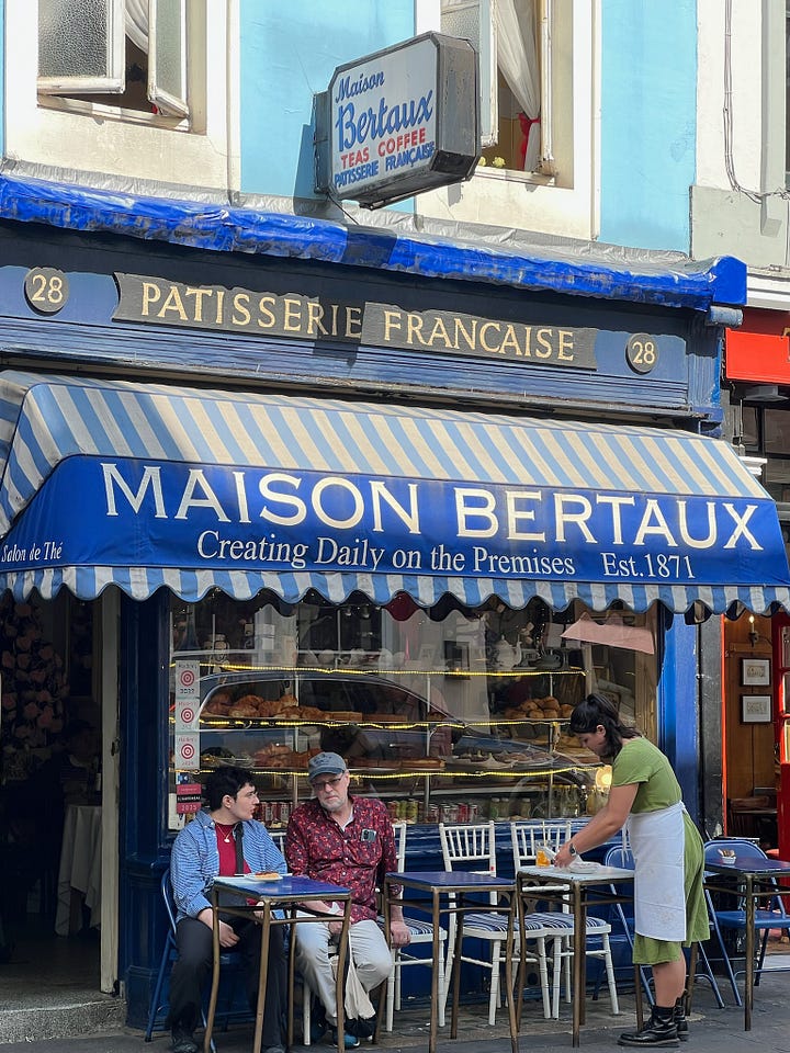 I felt so lucky we got such lovely, sunny, warm weather on both ends of my Euro summer trip in London. Truly, London is at its finest when the sun is out. It felt like everyone was outside, dressed in their spring outfits. People were biking, dining in outdoor seating, and soaking up the warmth in the parks. Even the one late afternoon shower on one of the days was lovely as we were sitting at Maison Bertaux in their open-air indoor seating, enjoying a cappuccino and scone. I will say, the pollen was outrageous the first weekend. There was a symphony of sneezing all around us during the mid-afternoon hours, and you could see the sheets of pollen raining down from the trees.
